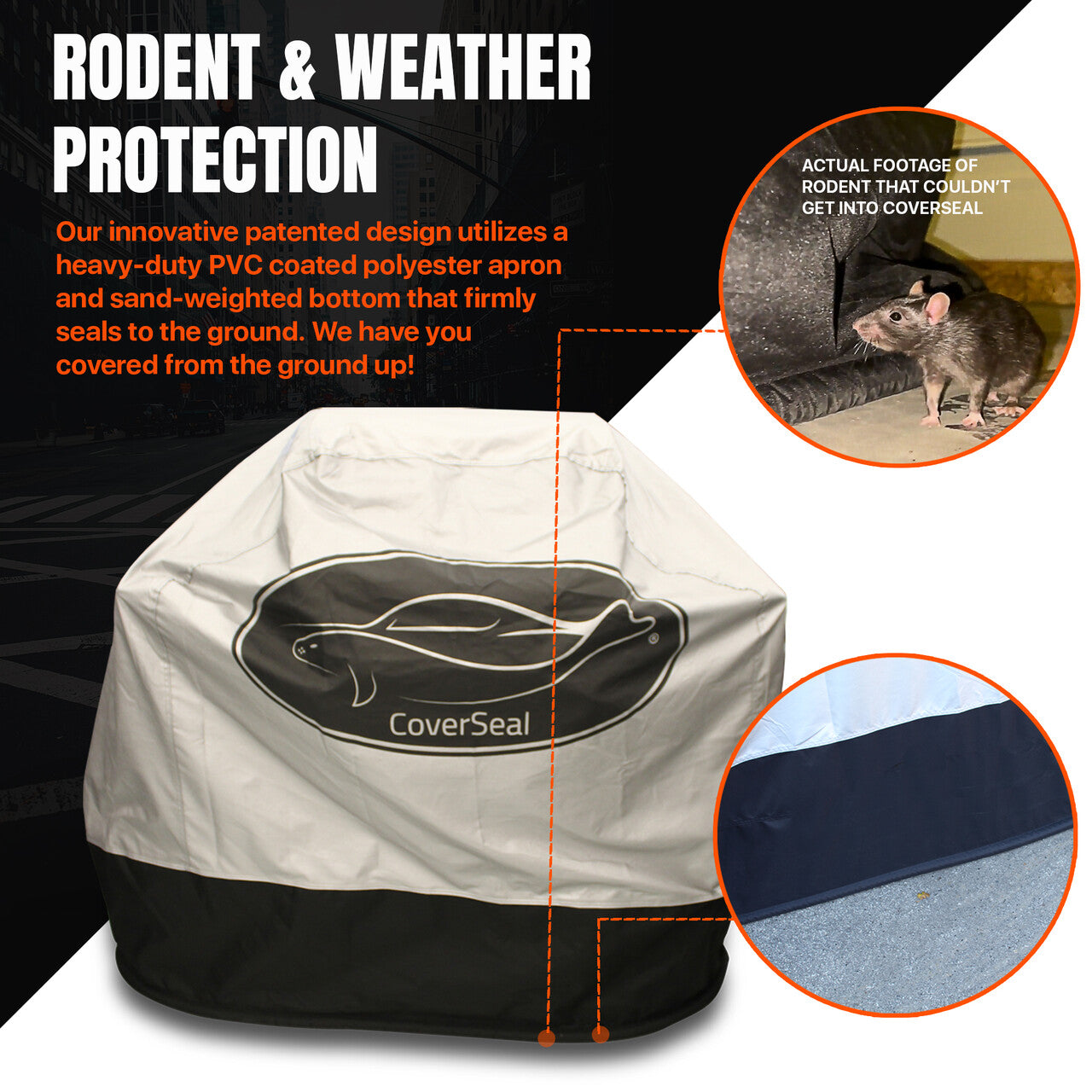CoverSeal uses its patented weatherproof, weighted apron to seal the cover to the ground. Critters of all shapes and sizes avoid lifting the cover’s heavy edge. They will travel around the cover, realize there is no entry point, and move on in search of a more convenient shelter.